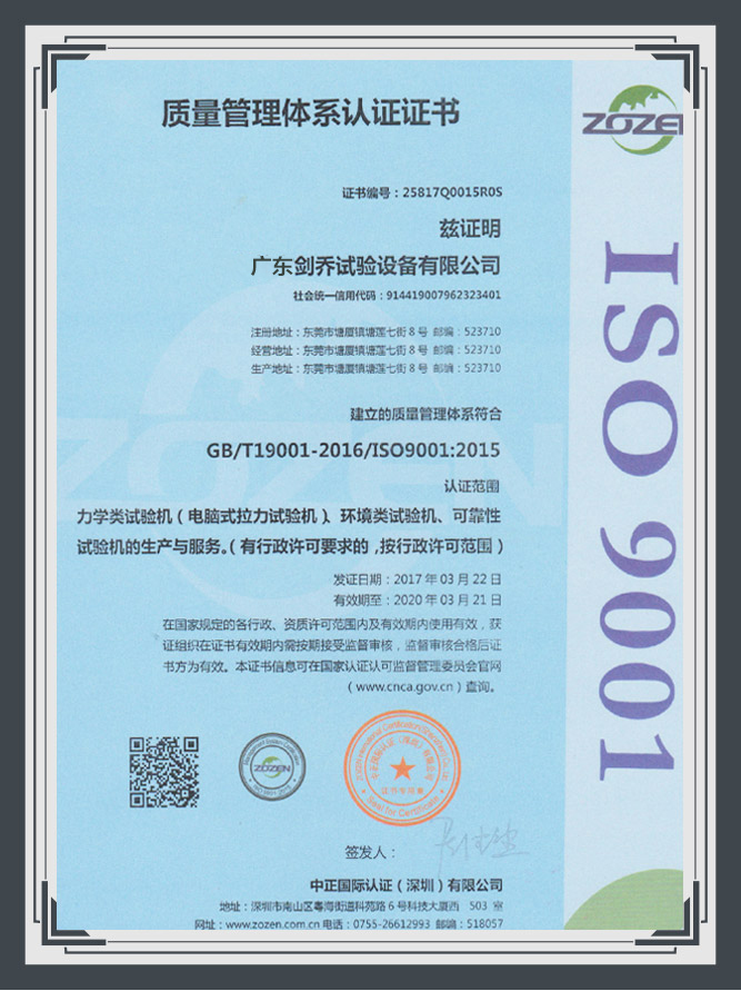 廣東劍喬試驗設備有限公司【劍喬儀器】20年振動及環境試驗設備生產大型廠家,主營產品:恒溫恒濕試驗箱、冷熱沖擊試驗箱、三綜合試驗箱、振動試驗機等,歡迎來電咨詢.服務熱線:0769-87922848!